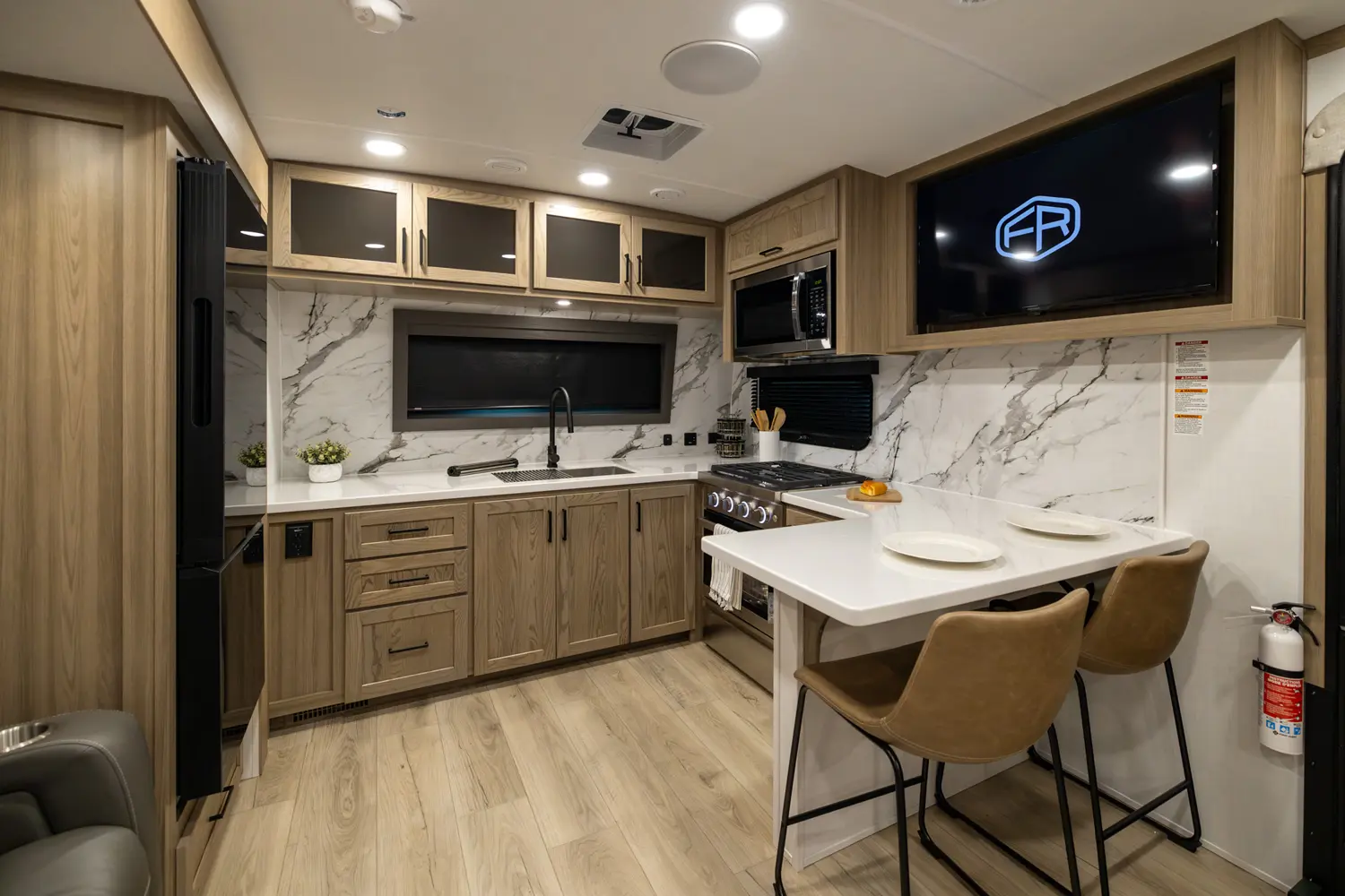 EXQUISITE, EXPANSIVE INTERIORS AS THE NORM. WELCOME TO THE CLASSIC SERIES, REDEFINING THE CAMPING EXPERIENCE THROUGH AN ARRAY OF REMARKABLE FEATURES. With its inviting open floorplans and ample storage capacity, there's room for those cherished guests or family you wish to bring along. As you nestle into the embrace of a plush king or queen sized bed, the restlessness of your adventures fade away. Through its efficient layout and panoramic windows, the classic travel trailers offer you an opportunity to luxuriate in your surroundings, all while enjoying the comfort of your serene interior.