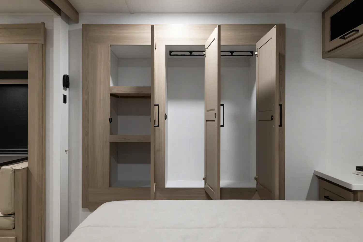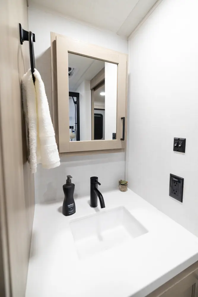 This travel trailer has everything you need and is still under 30'! This unit offers a walk around 60"x 80" queen bed, night stands on either side, and a big wardrobe slide. The 67" theater seating and the 44" dinette slide out giving the kitchen and living room area an open feeling. The rear bathroom and front bedroom are equipped with big 36" sliding doors allowing for comfortable entry and exit.