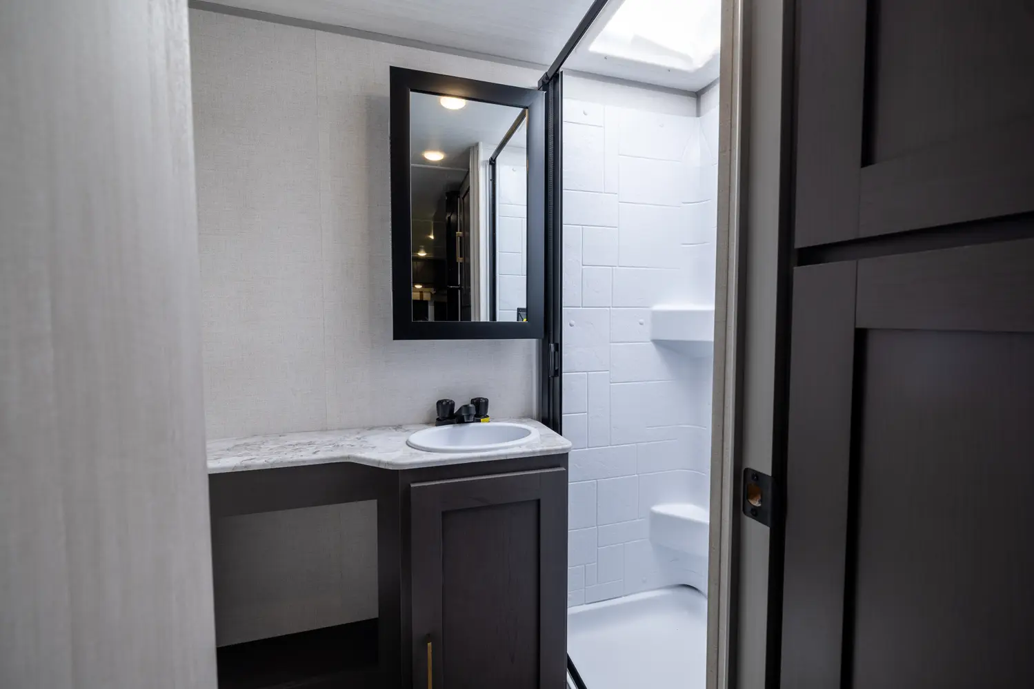 The 16MKD is a nimble, family-friendly travel trailer that delivers big comfort in a manageable 21'8" design. A front queen bed offers a cozy retreat for adults, while twin bunks are perfect for kids or guests. The full rear-corner bath adds privacy and convenience, making this trailer ideal for both quick getaways and extended adventures. Compact, capable, and thoughtfully designed — the 16MKD makes family travel effortless.