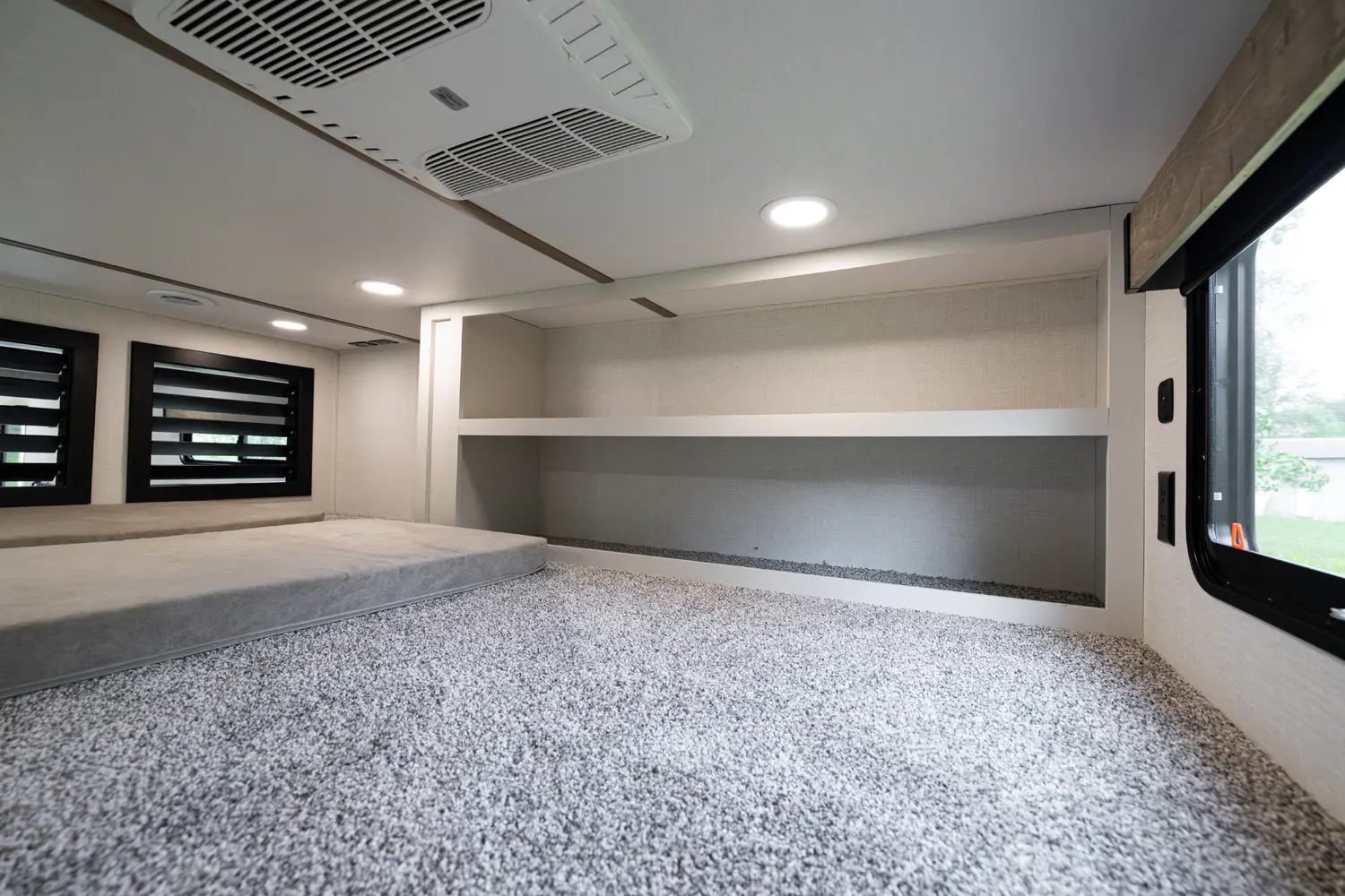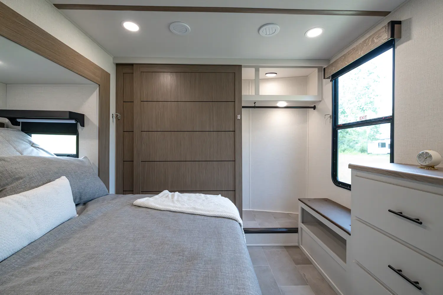 • 110 Outlet & 12V Charging Ports Beside Bed